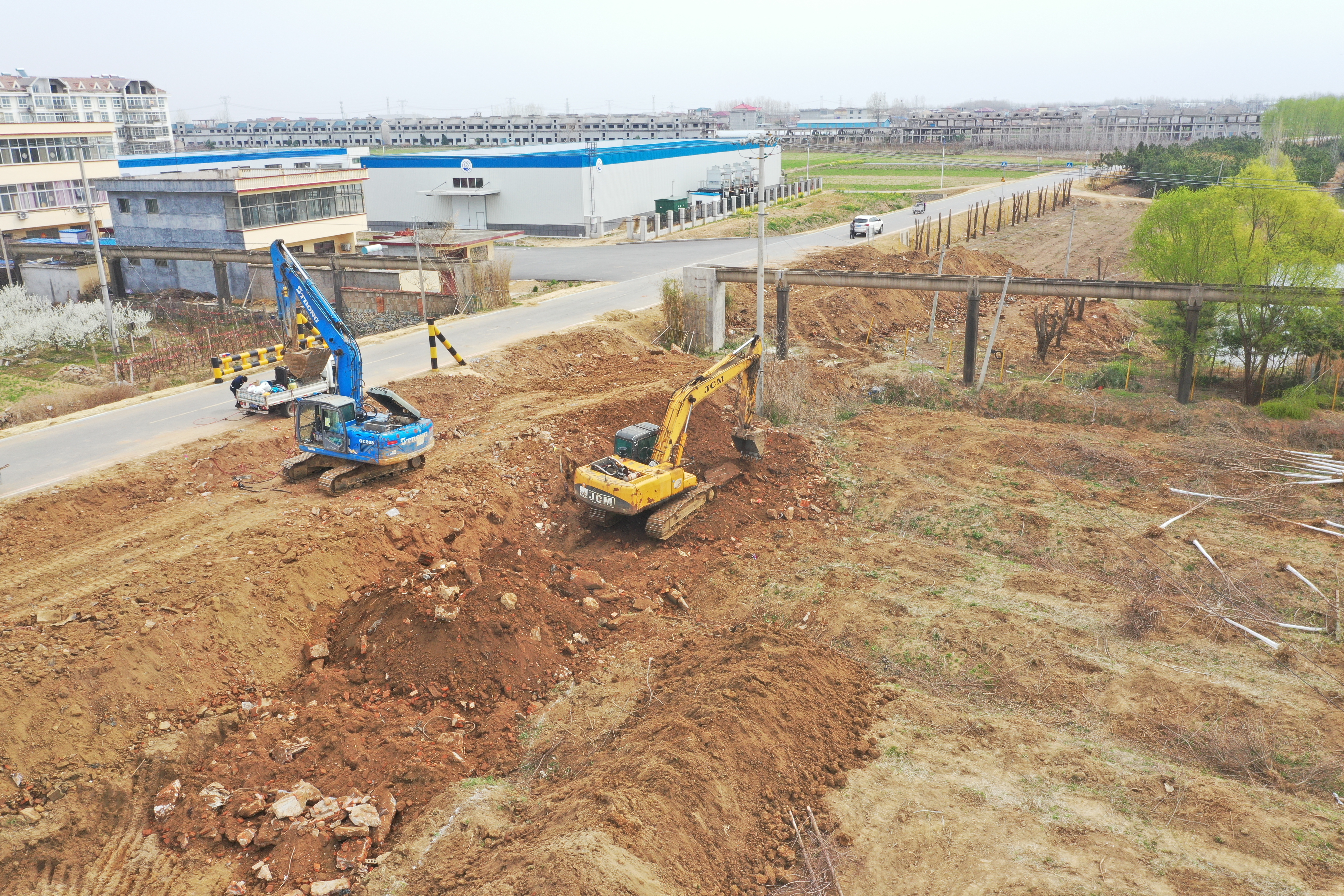 在石梁河水库生态修复项目的施工现场,机声轰鸣,在现场管理人员的有序调配下,20多台大型机械和100多名工人正在进行场地清表、整平和绿化苗木移栽等工作,施工现场各种机械及运输车辆往来穿梭,一派热火朝天的景象,复工建设掀起了小高潮。