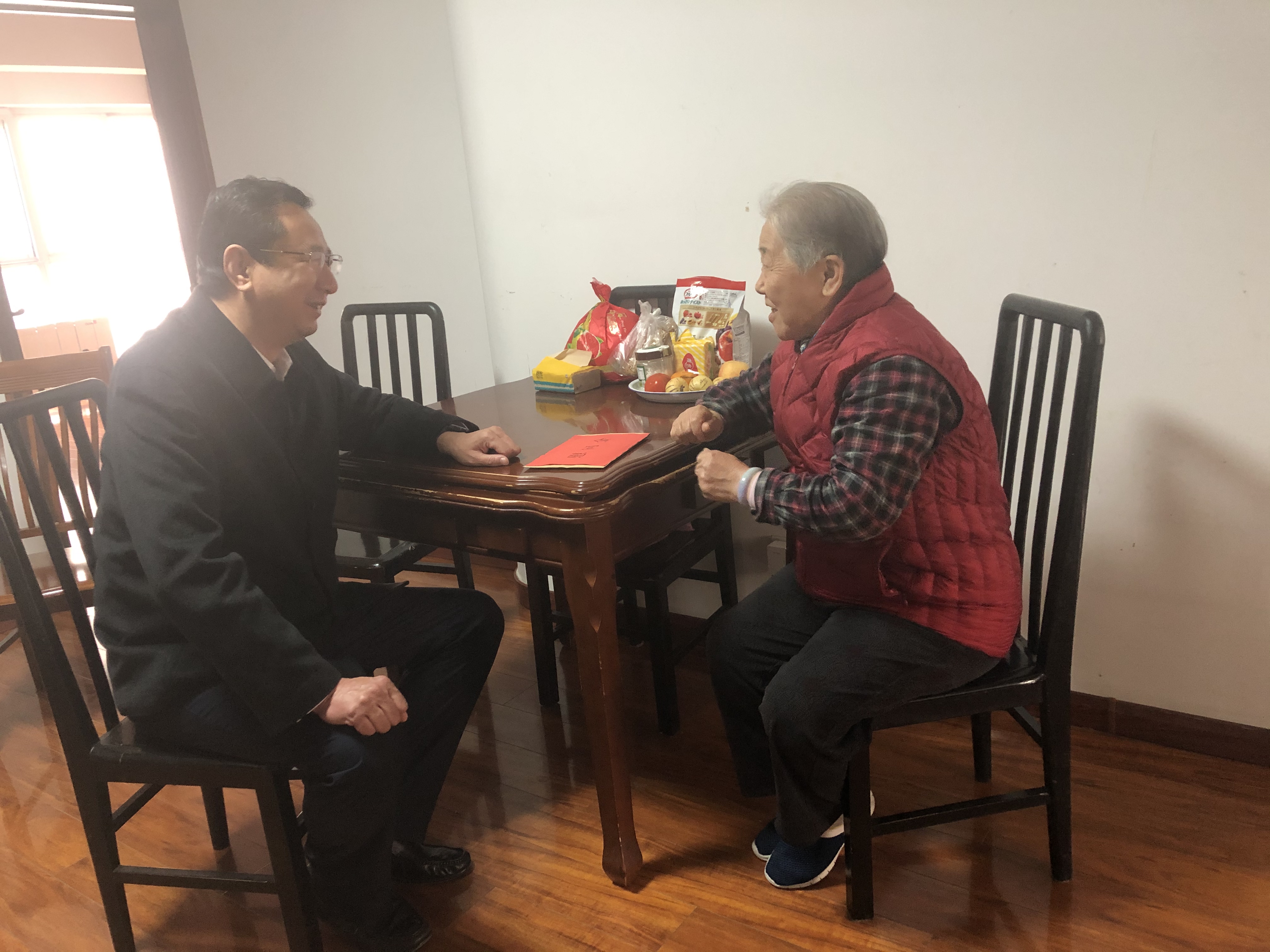 在抗美援朝出国作战志愿军老战士于少华家中,因老战士身体不适正住院调养,刘佃华书记代表公司党委、经理室请家属代为转达对老同志的亲切慰问和美好祝福。