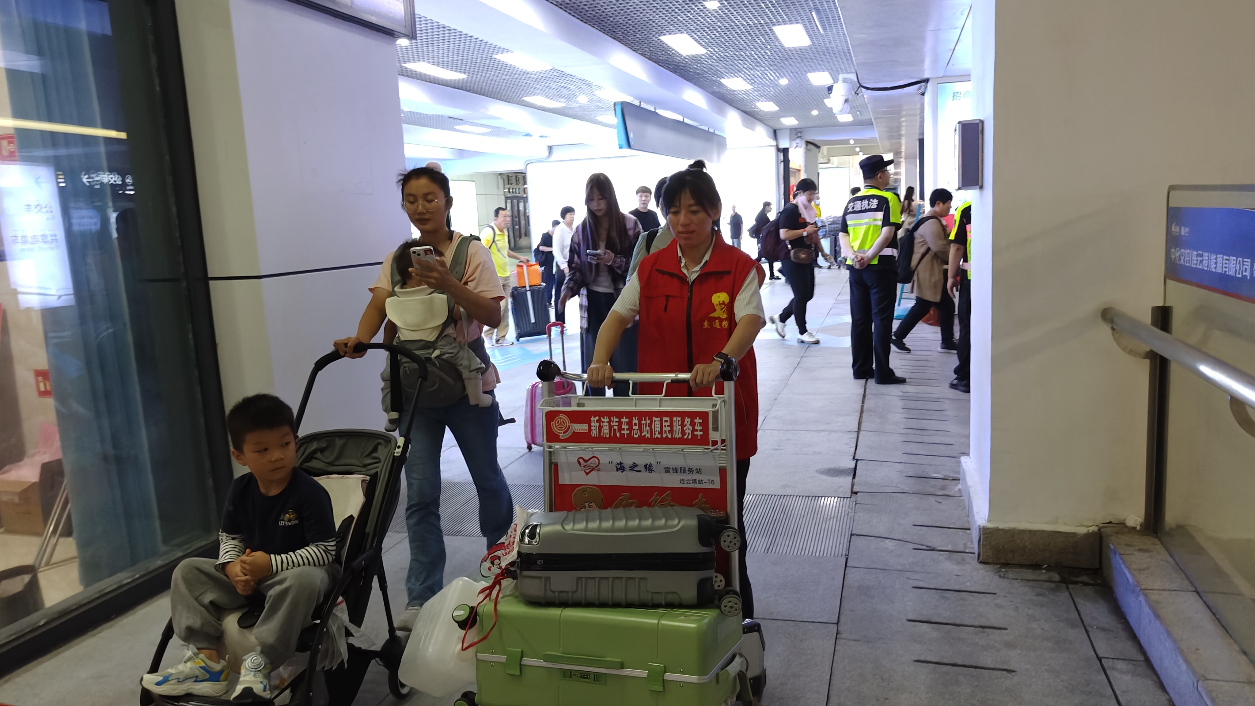 在国庆期间,连汽新浦汽车总站的“雷锋车”驿站内人来人往,热闹非凡。而在这片繁忙之中,一群身着制服的“雷锋车”手和志愿者们正默默无闻地奉献着自己的力量,他们以实际行动传承和发扬着雷锋精神。