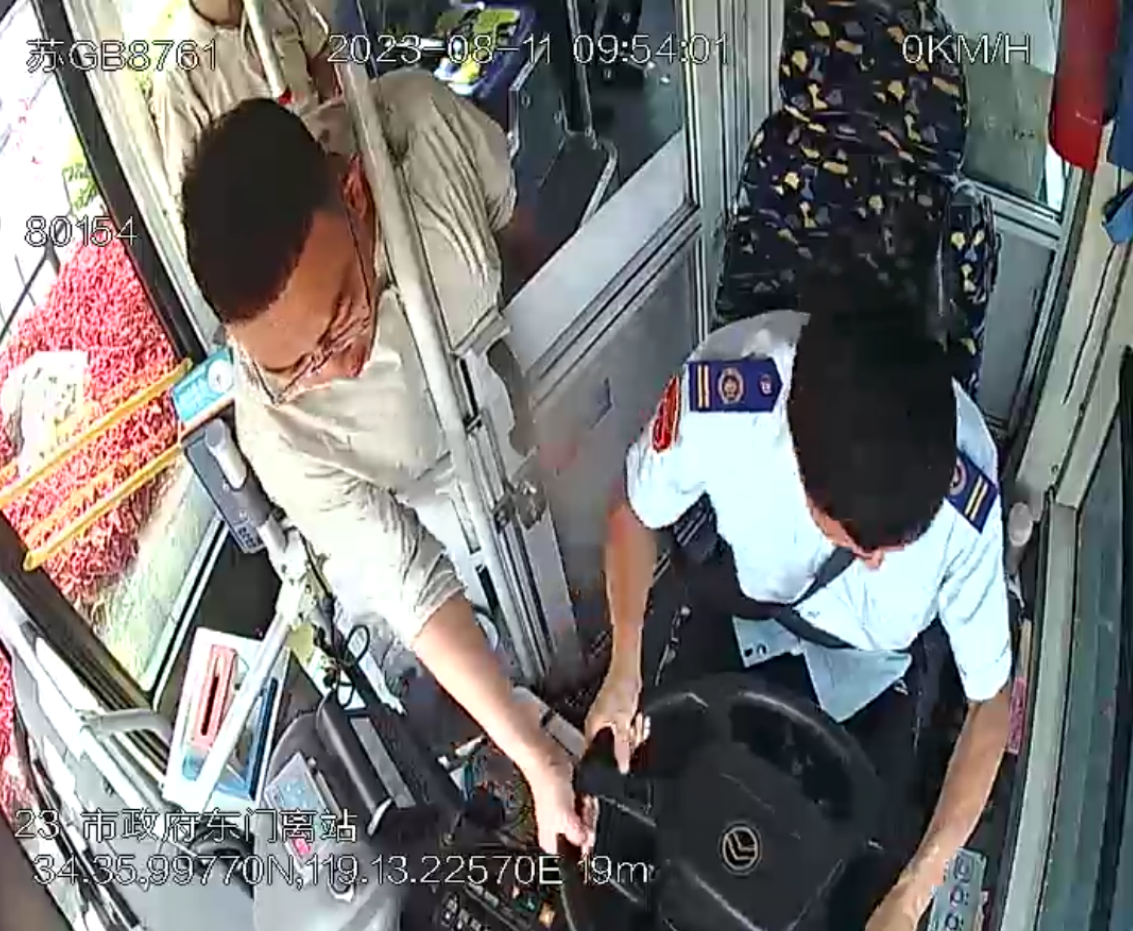 此次演练模拟两个演练场景:一是9时52分,一名乘客在市政府东门站附近抢夺方向盘,驾驶员江海龙按照“停车、劝导、报警”六字方针,进行应急处置,并求助乘客帮助拨打110报警。二是10时06分,在公交集团新华停车场内,车辆发生交通事故起火自燃、车门被封堵,江海龙用破玻器、安全锤击碎玻璃,引导和帮助乘客从窗户逃生,使用手提灭火器扑救火源,对晕倒窒息乘客进行心肺复苏,求助专业医务人员进行救助、拨打 120 急救电话,同时逐级上报现场情况及车辆停靠位置。