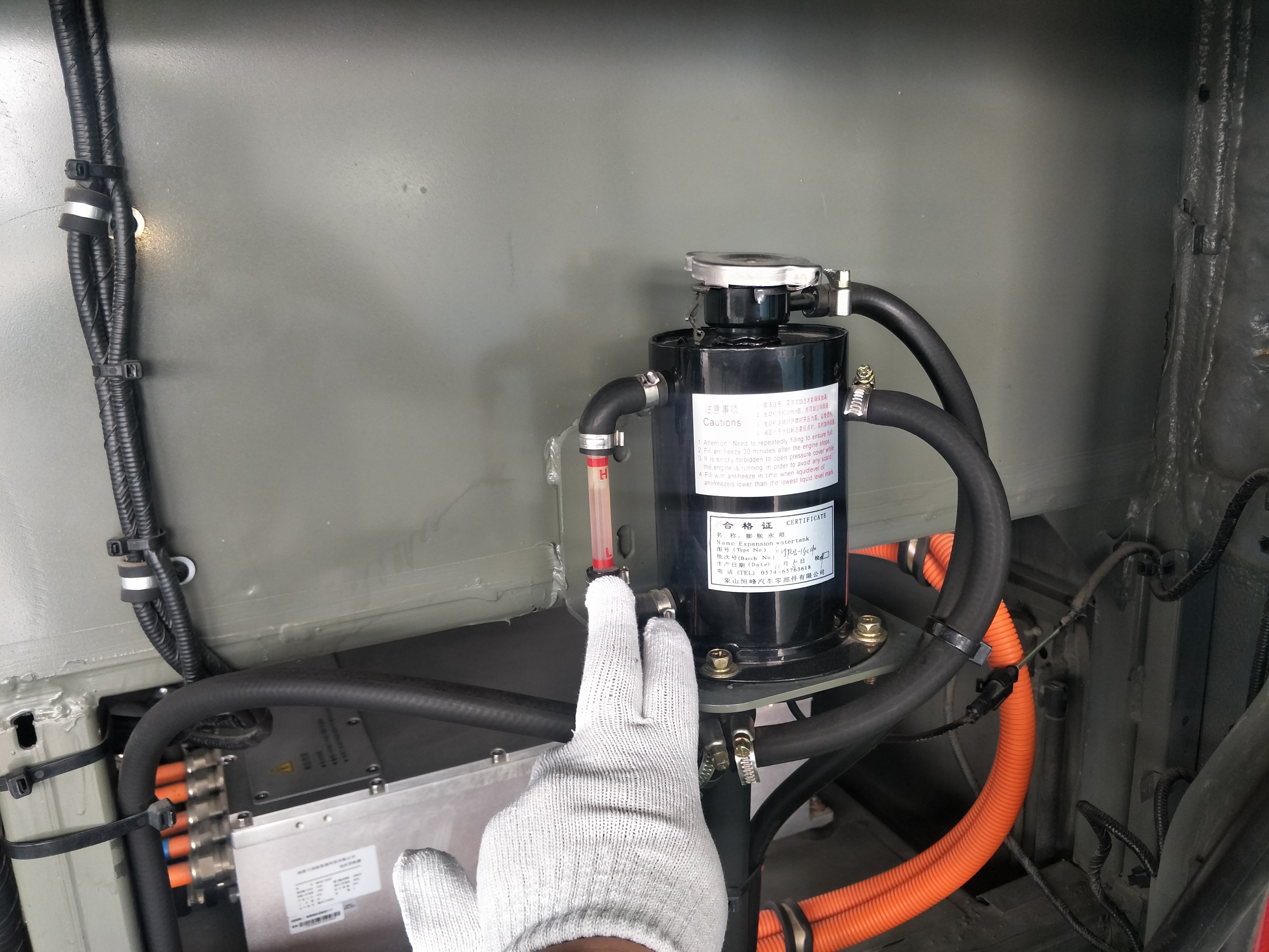 3.热车后,检查防冻液储水罐上端的回水管回水情况,若回水不畅或堵塞会造成水温过高。