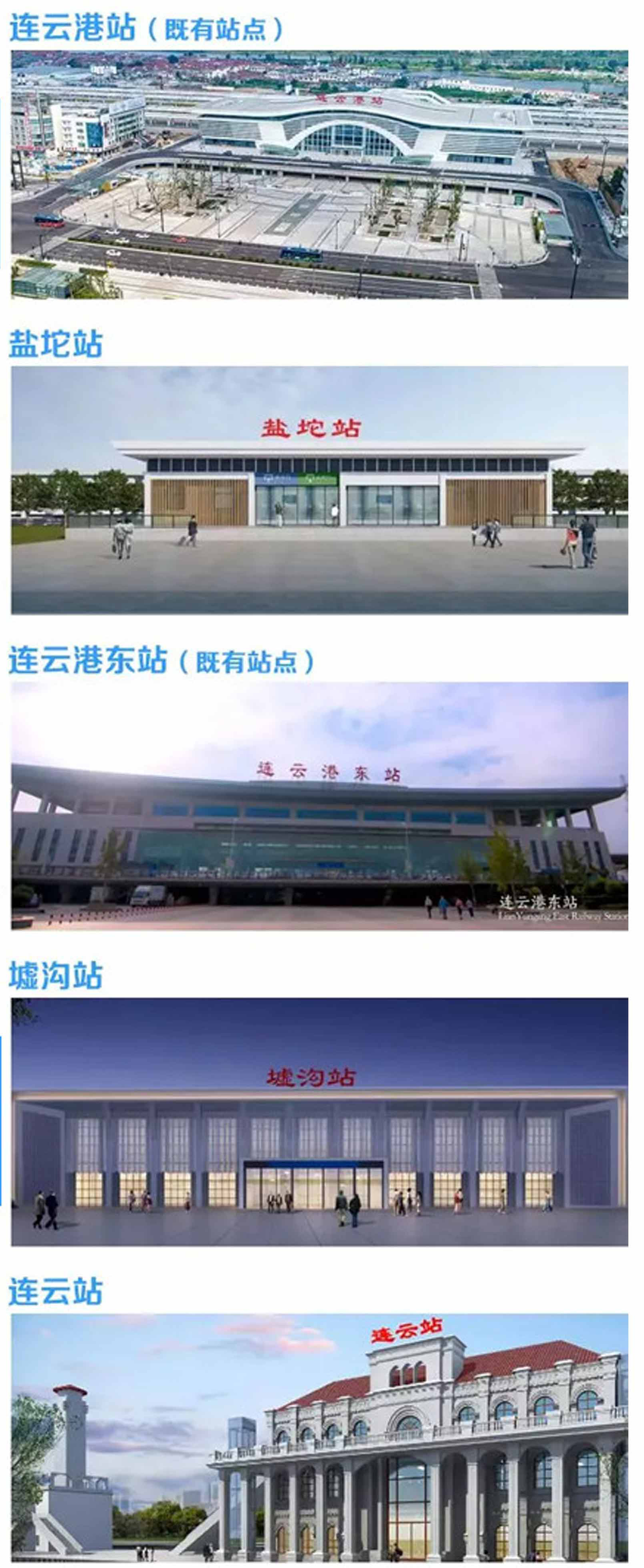 盐坨站和墟沟站造型较为现代,连云站为欧式造型。“每个站点由不同的施工队伍建设,拿墟沟站来说,体现的是海洋文化。盐坨站站房体现了盐文化,设计时做到‘一站一景’。”王梁洲介绍,市域列车项目全线长35.1公里,总投资约6.6亿元。沿线设置连云港站、盐坨站、连云港东站、墟沟站、连云站5个客运站,沿途车站站房设计结合地方文化特色,站站各异,与周边人文环境融为一体,整体简洁大气、典雅清新、风格鲜明,体现人文情怀和当地建筑的风格特征。