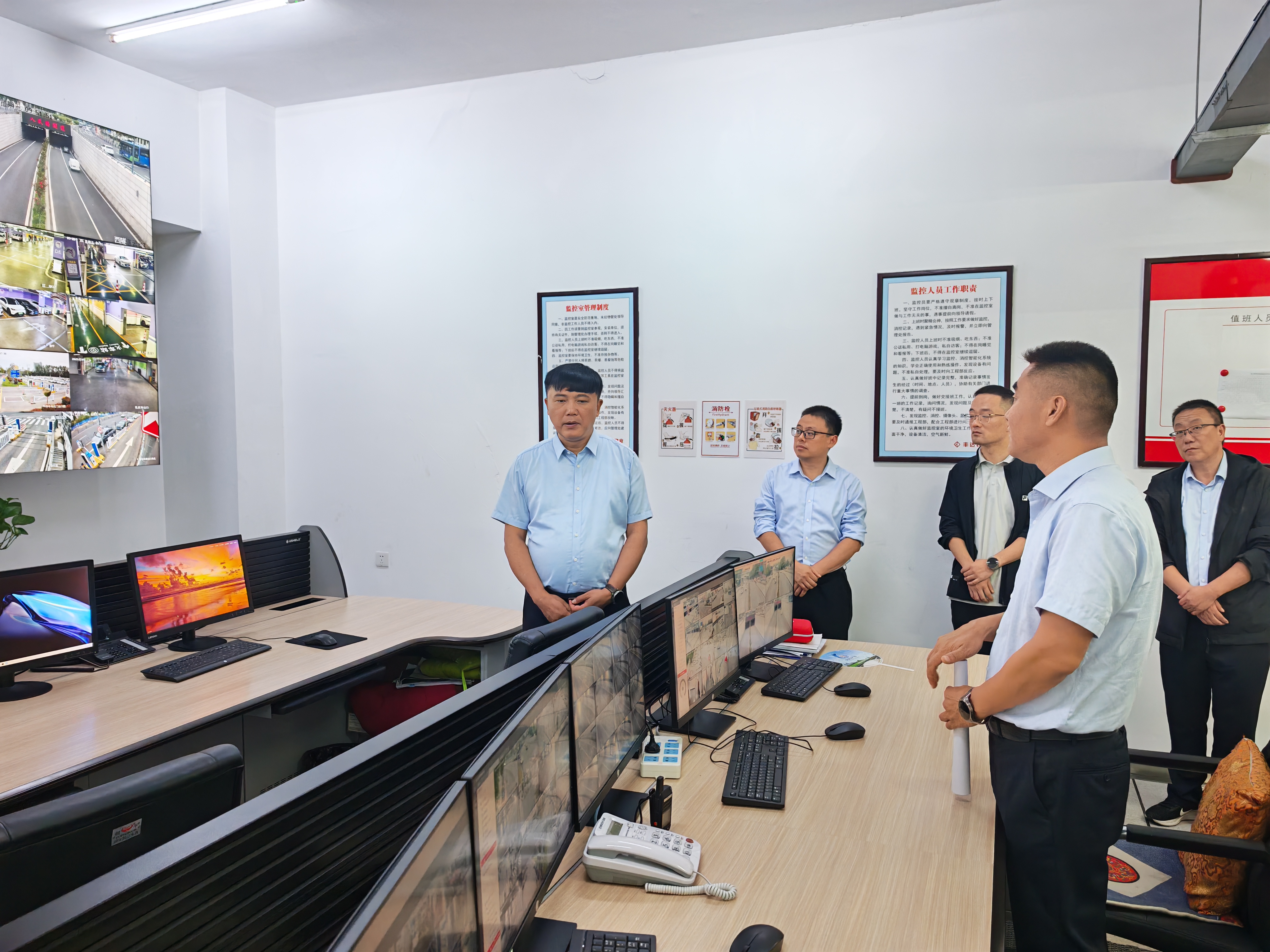 戴衡一行深入综合客运枢纽P1地下停车场,实地查看收费室、中央控制室等重点区域,并通过视频监控系统实时调阅出站口、进站口、出租车上客点、人民路隧道等关键点位的运行画面,详细了解节日期间安全保畅措施、值班备勤安排及日常运营管理情况,重点检查了停车场智能化系统运行状态和现场标识引导设置。