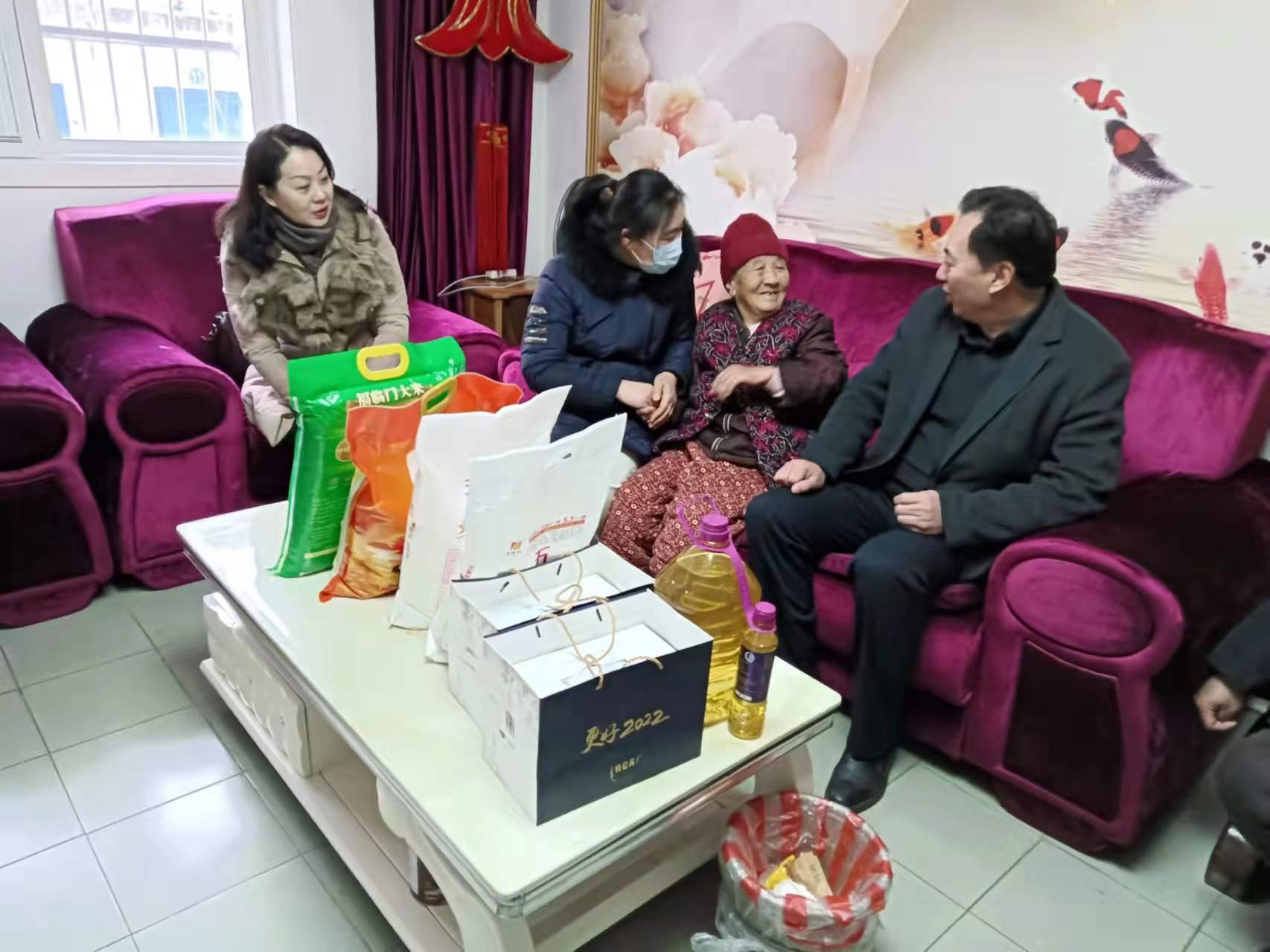 走访慰问中,栾文忠与困难老人们亲切交谈,详细的了解了老人们的身体和生活状况,再三嘱咐他们保重身体,有困难随时向社区反映。同行人员为老人们送上了大米、食用油、牛奶等慰问品,并致以节日的问候和诚挚的祝福。慰问结束后,栾文忠代表企业向东风社区及工作人员赠送医用口罩1000只、防寒物品6套等,为社区奋战在一线的工作人员和户外劳动者、困难家庭等群体送去温暖和关爱。