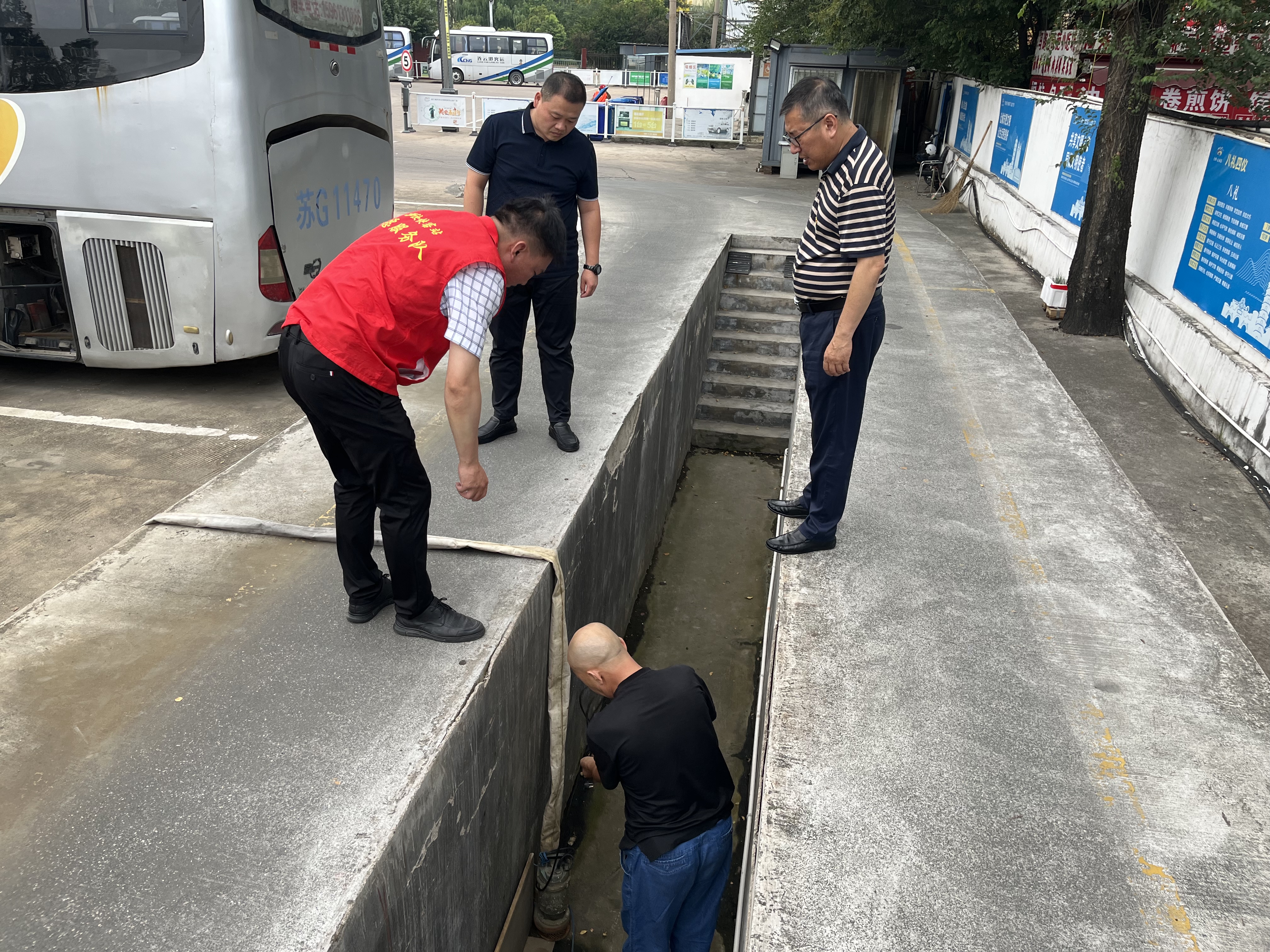 各客运站工作人员重点检查站场和候车区停车场、泵房和消防控制室及泄水孔、边沟、雨水井等排水系统运转情况、防汛物资储备情况,认真排查各点位安全防汛设施设备运转情况。同时,排查户外用电设施设备、室外广告牌,空调外机等高空物件。