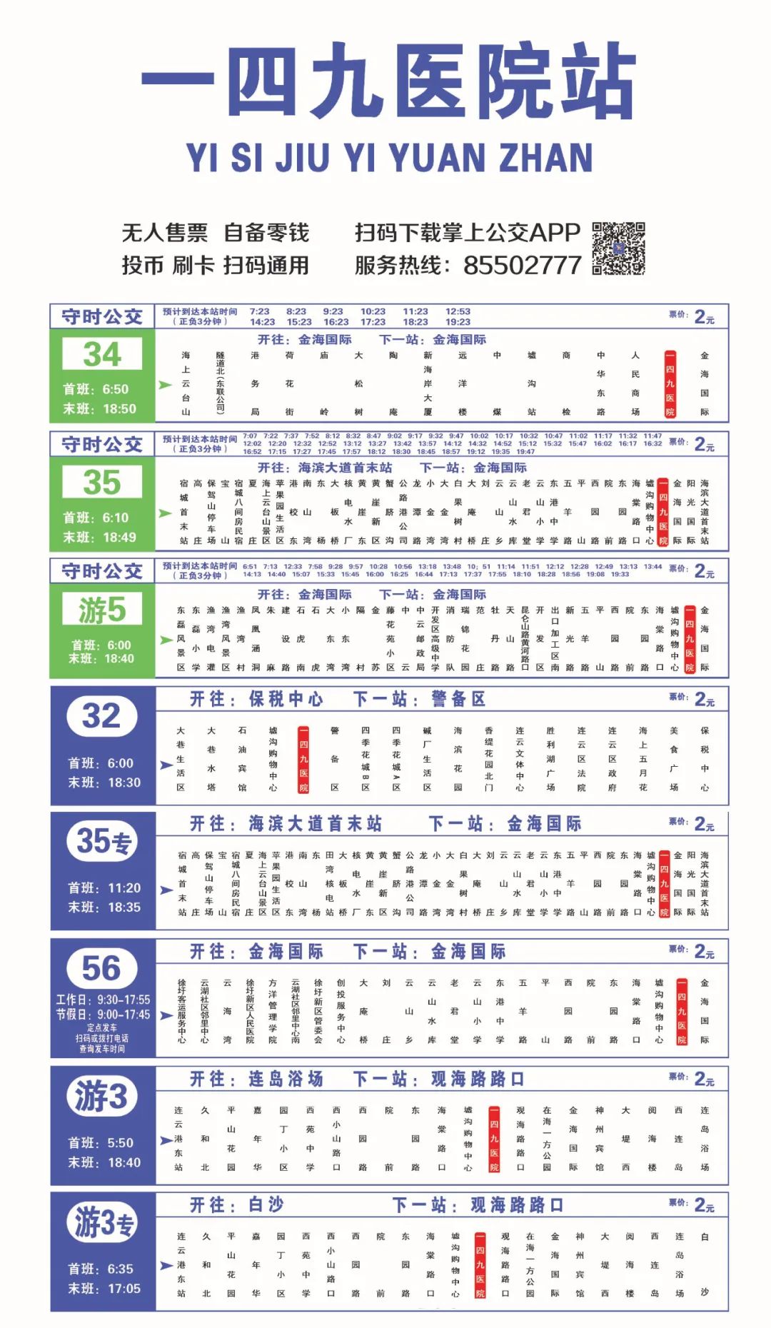 为进一步提升公交线路运行效率和服务水平,提高公交发车准点率,连云港市交通控股集团权属公交集团经前期客流调研,优化线路运营模式,经交通主管部门同意,于2月26日起,推出首批12条“守时公交”和1条“响应式公交”,更好地服务市民公交出行。“守时公交”线路分别为8路、9路、34路、35路、53路、56K线、58路、65路、121路、122路、游5路、903路,“响应式公交”线路为601路。