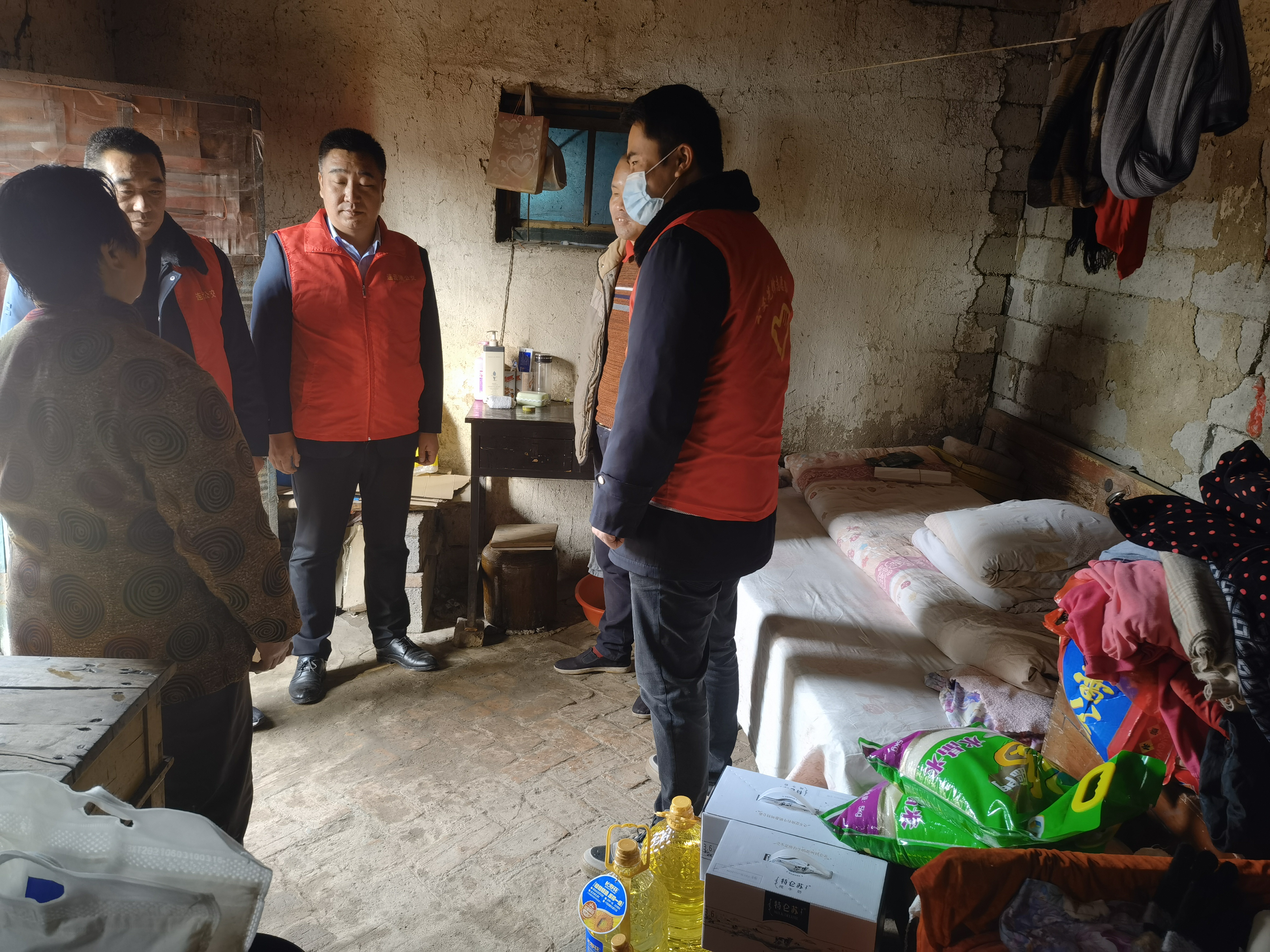 本次志愿服务活动主要走访慰问对象系公交一名残疾乘客——徐恒光,浦南镇浦北村棚户区的一个普通农民,43岁的他因幼时的一起机器爆炸导致双目失明,脾脏切除,丧失劳动能力,仅与老母亲靠村上每月几百元的救助相依为命,生活十分拮据。志愿组一行来到徐恒光的家中与其进行深入交谈,详细了解近期家庭状况、经济来源及生活中存在的具体困难和需求等情况,鼓励他要坚定生活信心,保持乐观心态,积极面对生活,持续康复治疗,并为残疾人家庭送上了米、油等日常所需用品。