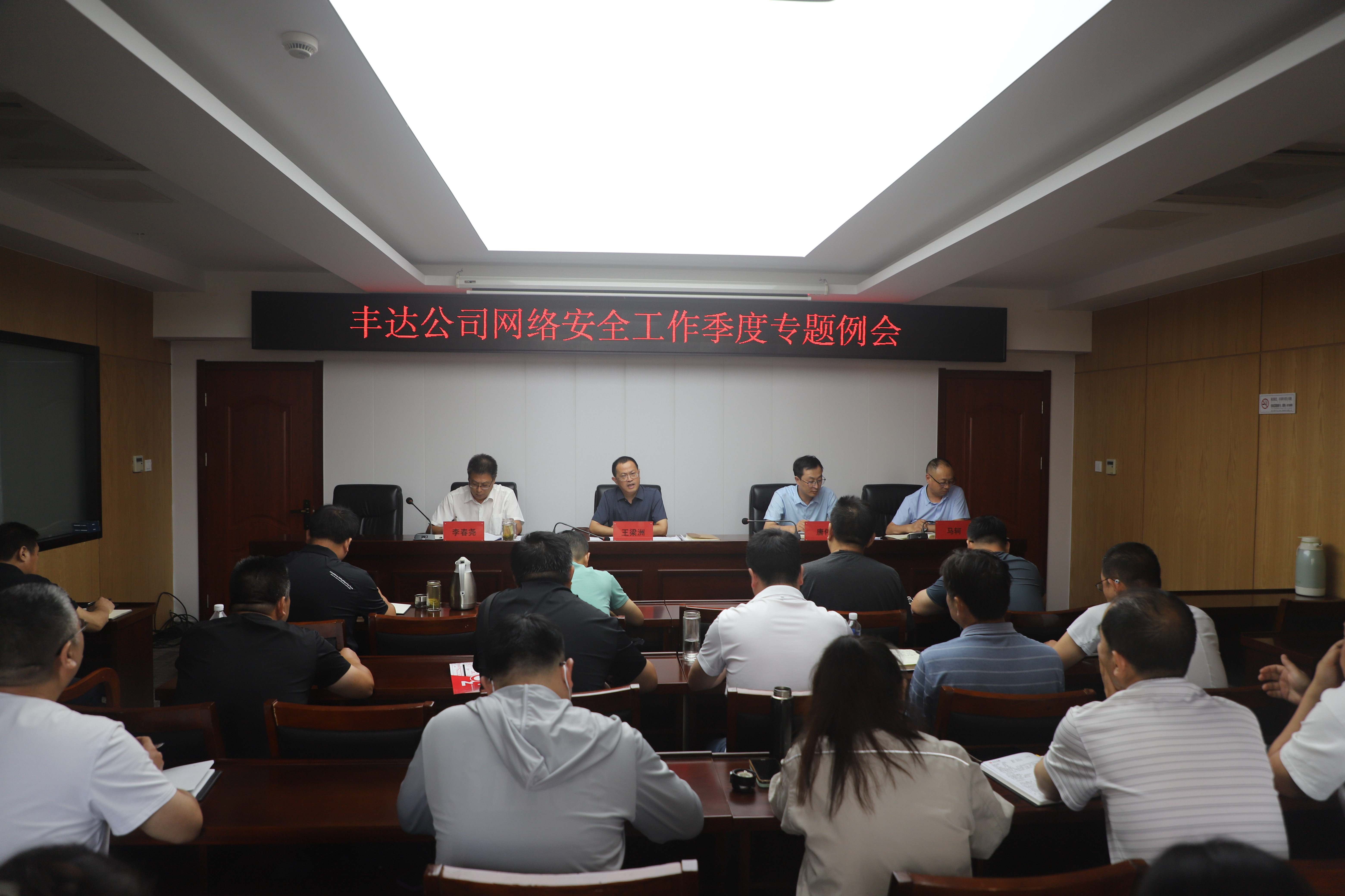 为进一步加强网络安全管理,提升网络安全意识,筑牢网络安全防线,确保公司网络安全有序运行,8月3日,公司组织召开网络安全专题工作例会,会议由工会主席李春尧主持,董事长王梁洲、总经理唐伟出席并讲话,公司领导班子成员、中层干部、各分(子)公司办公室主任共计24人出席。