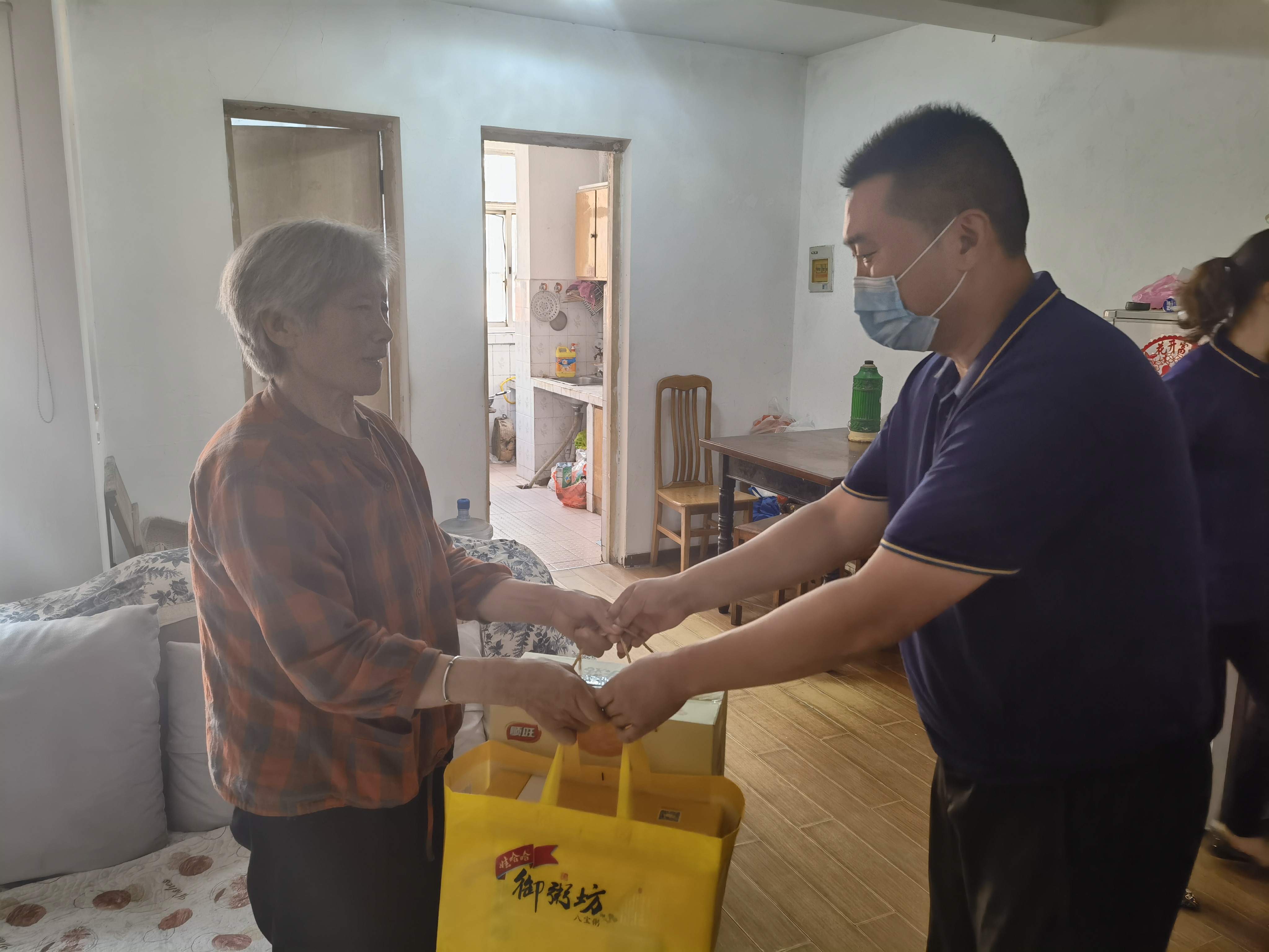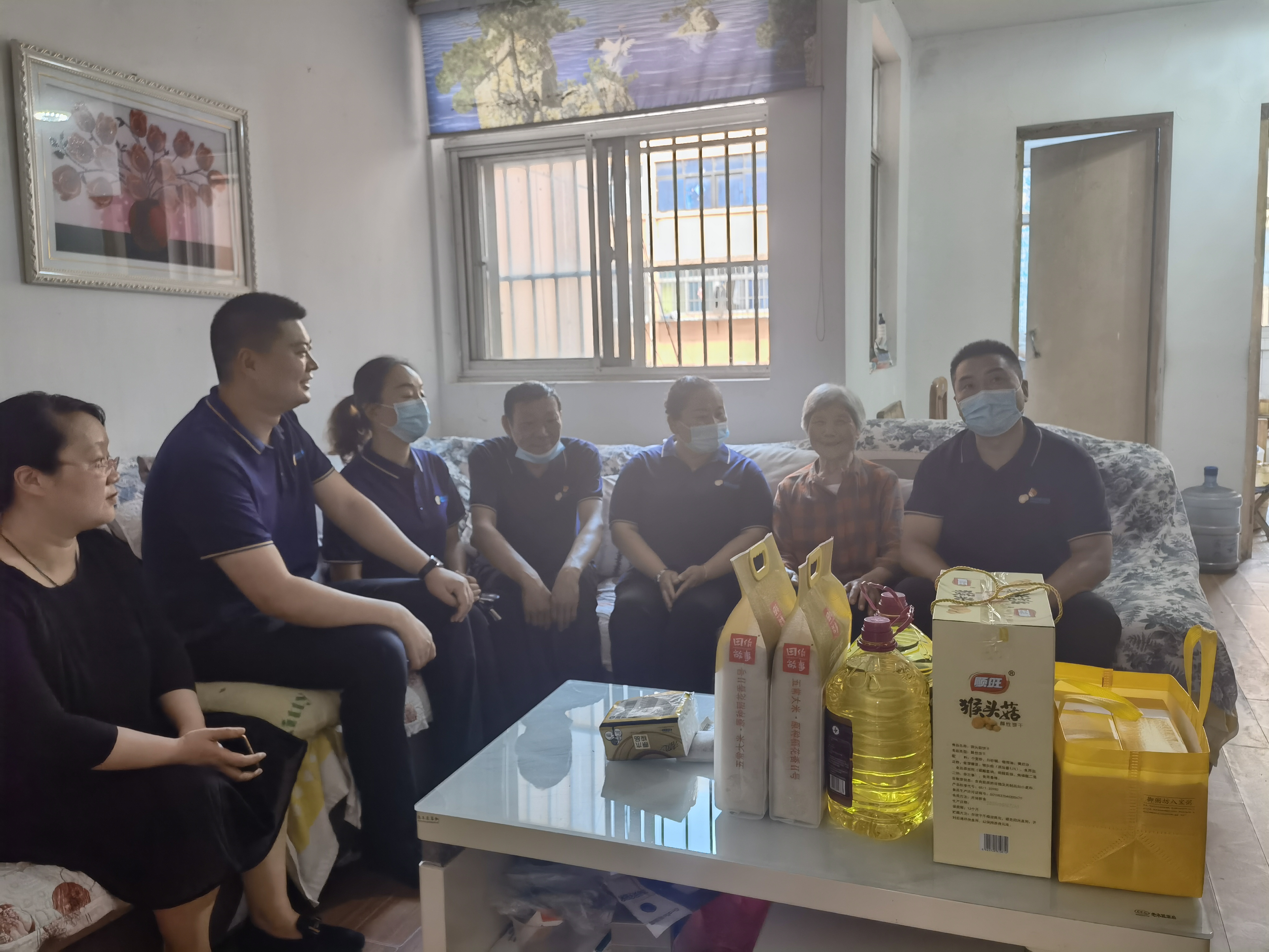 9月14日,明茂公司组织党员及一线志愿者走进烈士遗属王言翠的家中,为她送上生活用品和慰问金。