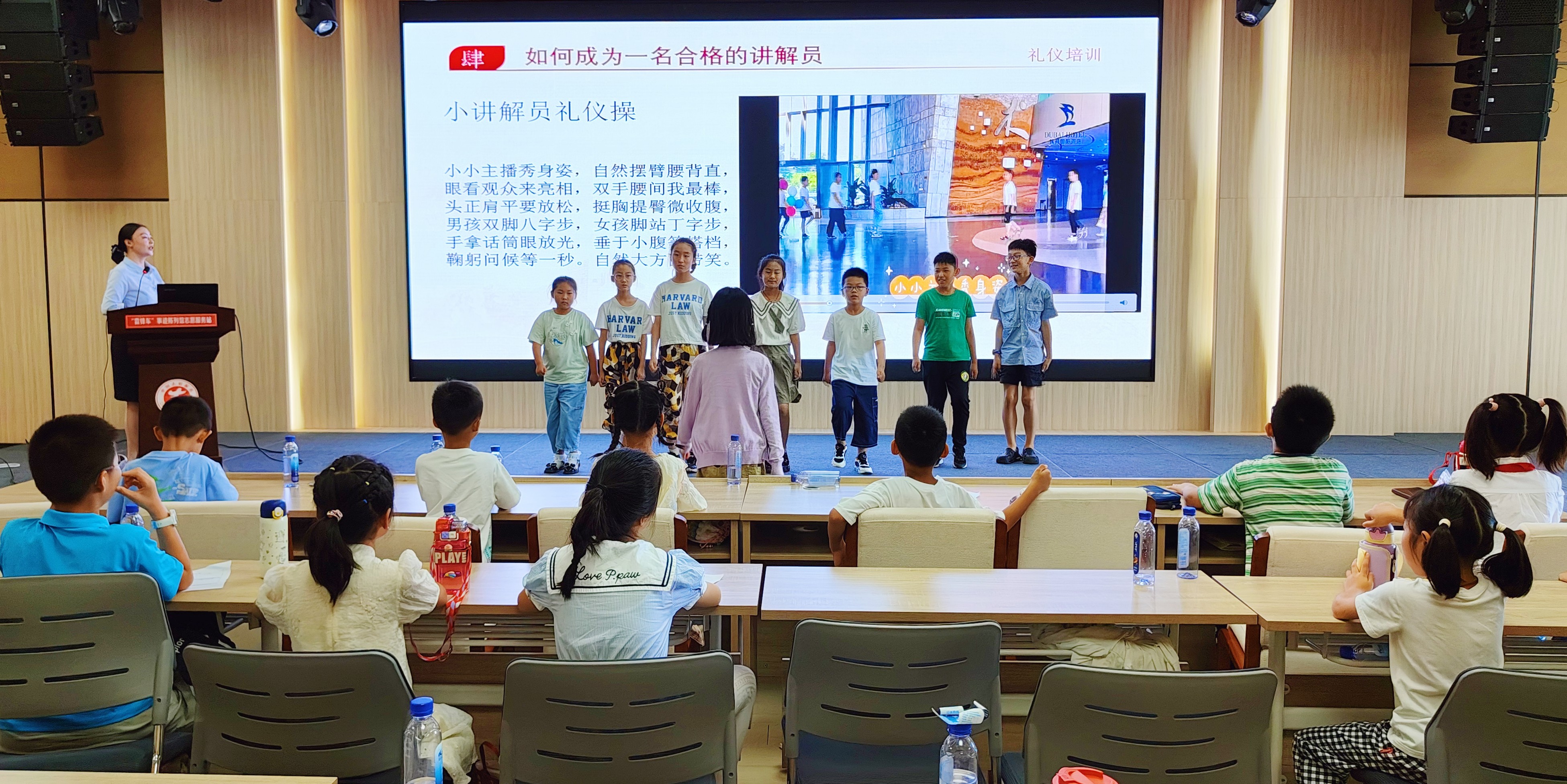 此次培训时间为期16天,教学内容丰富多彩,包括形体礼仪塑造、语言表达锻炼、讲解技巧提升以及分组实地演练等多个内容。此外,培训过程中还特别安排了阅读会、宣讲会等精彩活动,让孩子们“当一天‘雷锋车’手”,讲述一个“雷锋车”故事,阅读一本“雷锋车”书籍。