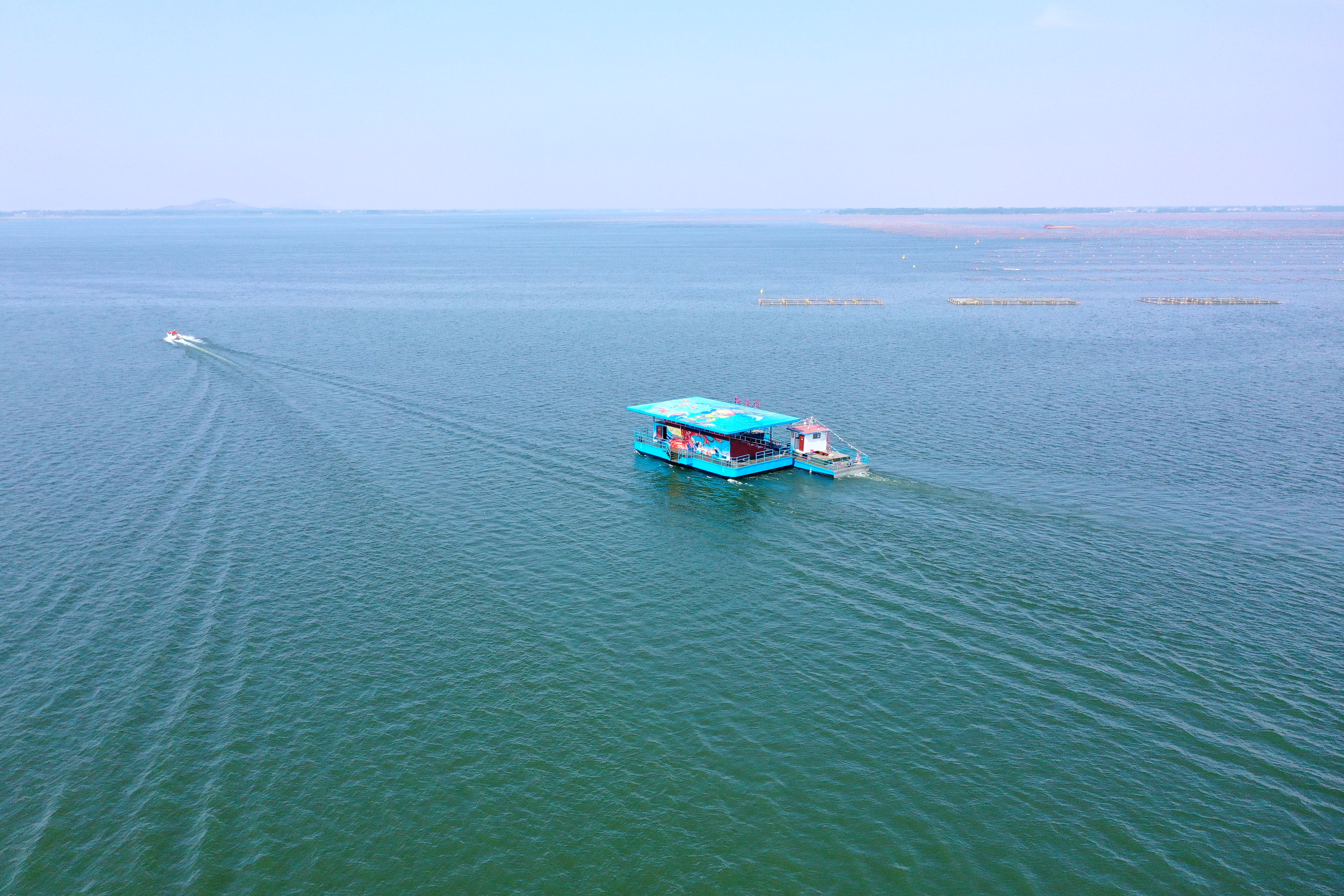 5月24日下午,石梁河水库幸福河湖建设清水进城行动起鱼捕捞活动成功试演,在石梁河水库大水面上,数十名捕鱼工人口号嘹亮,数不清的鲢鳙鱼欢跃而起,人与自然共生共存的和谐关系在碧水蓝天下获得具象化展现。