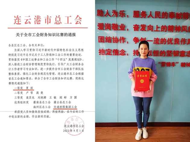 在市总工会举办的“喜迎二十大 建功新时代”全市工会财务知识比赛中,汽服公司夏雨积极备战,凭借深厚的理论功底、过硬的业务素质、沉着的应变能力,一路过关斩将,最终荣获一等奖,集团工会被授予优秀组织奖。