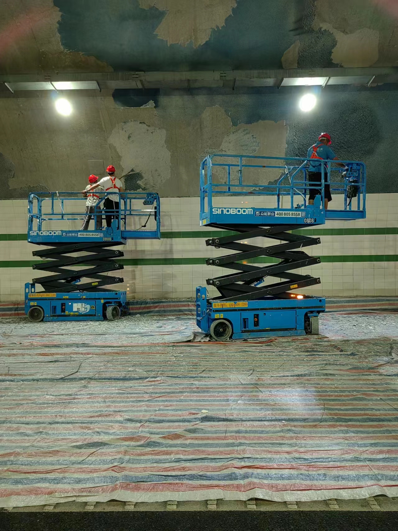 北固山隧道位于连云港市墟沟城区西郊,全长2780米。目前隧道内防火层脱落严重,严重影响行车安全。为保障隧道汛期交通安全,根据管养单位合同要求,丰达高速养护分公司多举措开展北固山隧道全封闭施工作业,预计工期一个月。