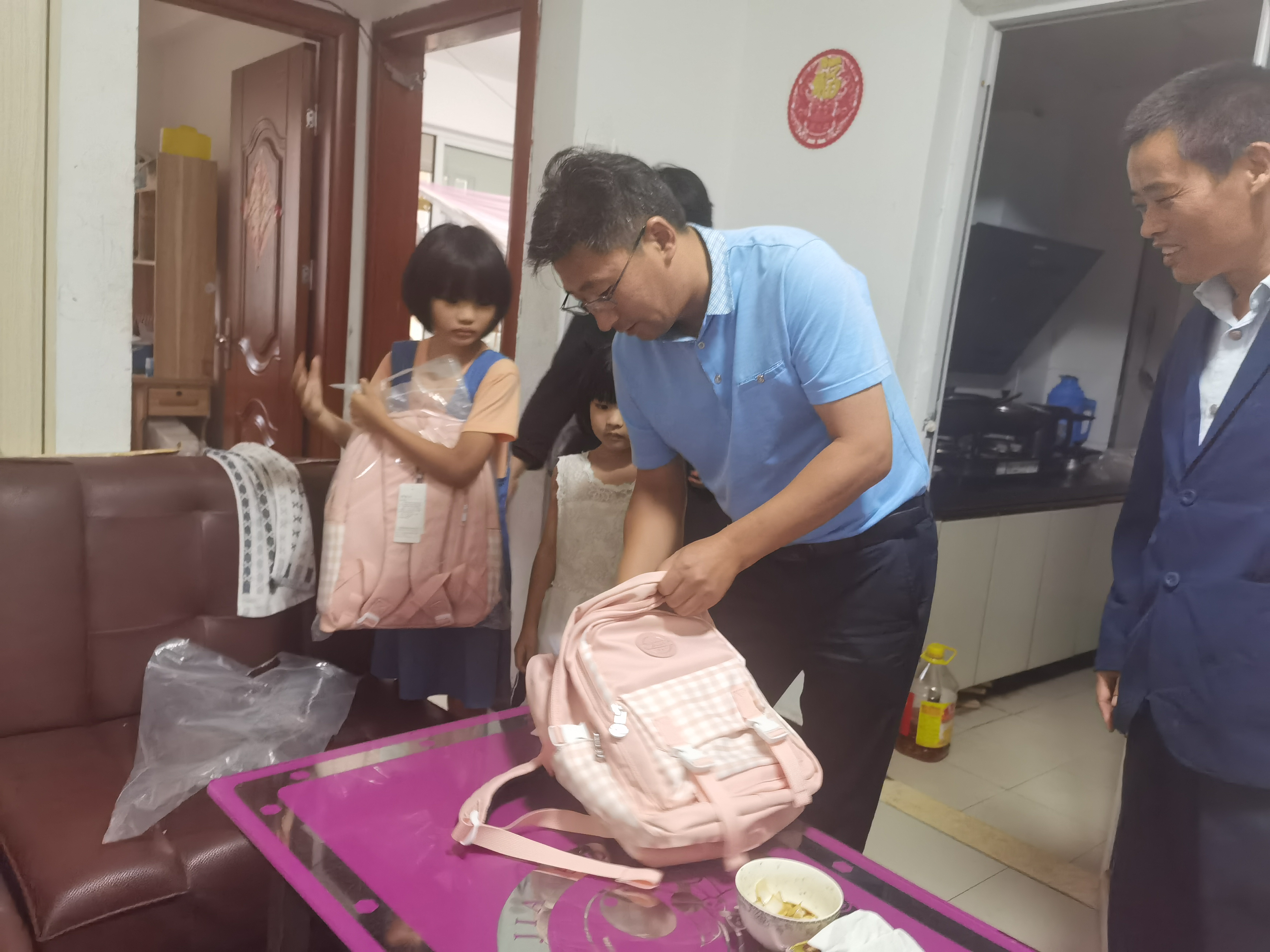 活动中,刘永善为困难职工家庭送上了助学金、书包及文具用品,鼓励职工子女要志存高远,好好学习,实现自我人生价值。同时也认真倾听了两个家庭目前的生活状况,鼓励他们勇敢面对暂时的困难,好好培养子女读书,在政府及集团的关怀下努力改善生活条件,也为孩子们创造一个良好的家庭成长条件。